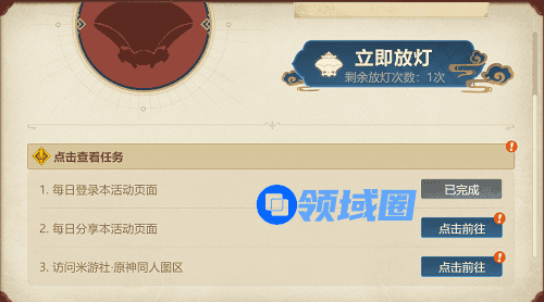 3、放灯的次数可以通过【点击查看任务】,并完成任务获取,今日最多可以放三次;