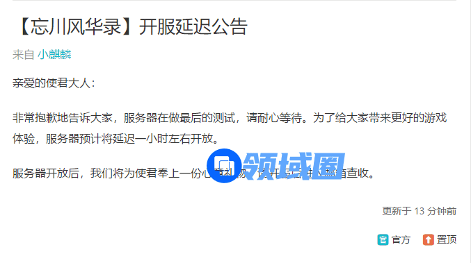 忘川风华录3月19日延迟到什么时候开服?