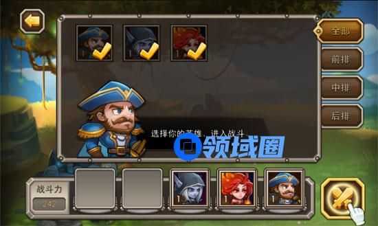 进入关卡好,首先要选择适合对付该关卡中敌人技能的英雄进入战斗!虽然目前我们只有3位英雄,但是随着故事的发展,将会有越来越多的英雄加入我们。