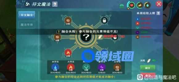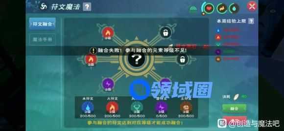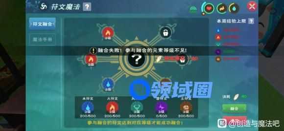 7个四级魔法,用排列组合试了70次,出现这个提示说明配方正确。另外新的二级魔法是风火雷土(符文灵箭)应该没有遗漏了。