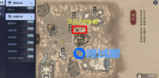 4、第三位药材沙中棘,先到燕云观看动画,然后到燕云的月牙泉,击败在月牙泉的卫兵就可以在附近采集到沙中棘。