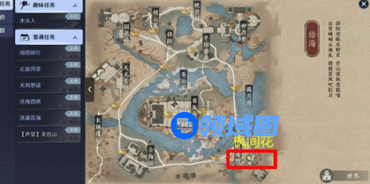 6、第五位药材枫间花,先自动寻路到徐海,到达徐海后会碰到一个姑娘让我们给她做找青菜做水煮肉片青菜可以在地图上通过厨师身份采集,如果背包有青菜就可以直接做一份水煮肉片。做完给姑娘之后就可以得到枫间花的线索了,枫间花如下图所示