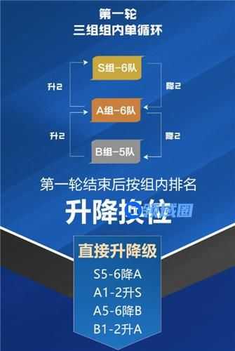 评级规则:组合进行BO5单循环,结束后根据组内积分排名直接升降换位。S组5、6名降至A组,A组1、2名晋升S组。A组5、6名降至B组,B组1、2名晋升A组。
