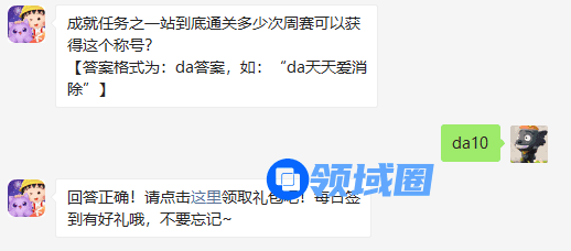 成就任务之一站到底通关多少次周赛可以获得这个称号?【答案格式为:da答案,如:“da天天爱消除”】这是天天爱消除3月30日每日一题,游戏宝小编为您带来正确答案。