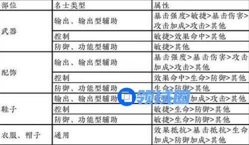 不同装备部位可洗炼得到的属性类别不同,根据实用程度,较为通用的推荐追求的属性如下(个别名士不承担相应功能时可灵活调整):