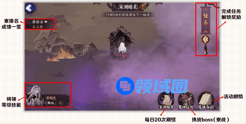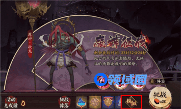 活动主要分为两个模块:探索&征伐,点击右下角可以直接进入。本次阴阳师将由将领替换,打完探索自动升级将领等级和技能,可点左下角切换将领技能。