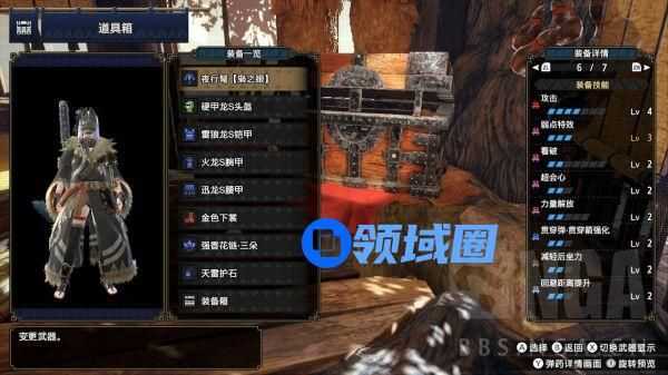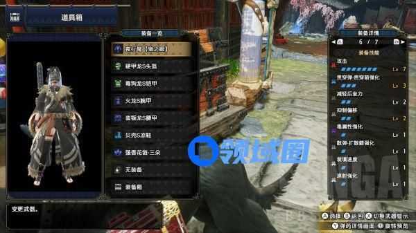 武器选择雷狼龙轻弩,百龙强化攻击2。什么都不需要插就是最优秀的反动装填参数了。建议就插一个[抑制偏移],搭配粗暴射击饭。