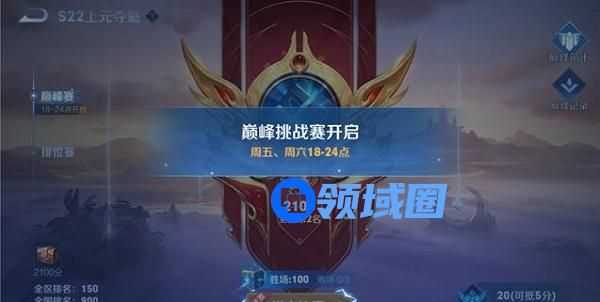 除了巅峰赛的开放时间有改动外,本赛季还会开放一种全新的限时赛制——巅峰挑战赛。在本赛季达到王者段位即可参与。开放时间为每周五~周六晚上18点-24点。玩家只需要在开启时间内点击“进入比赛”按钮即可开始挑战赛。规则与巅峰赛完全一致。每位玩家每周拥有三次失败机会,周五与周六的参与次数连通,在达到失败上限次数前可一直参与,不断累计胜场,直到本周挑战赛时间结束结算奖励。