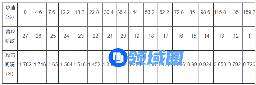 普攻的攻速阈值表