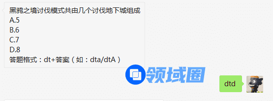 黑鸦之境讨伐模式共由几个讨伐地下城组成A.5B.6C.7D.8答题格式:dt+答案(如:dta/dtA),游戏宝小编为您带来黑鸦之境讨伐模式共由几个讨伐地下城组成答案分享。