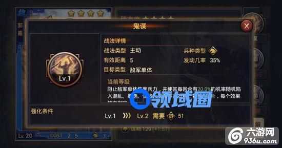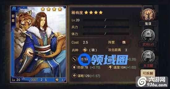 魏国不多的3距离大营武将,鬼谋控制极强,搭配落雷、迷阵等控制战法能收到奇效。