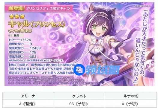 5.新角色【礼服可可萝】会战向,暂列80名,竞技场B,会战S,露娜塔A。