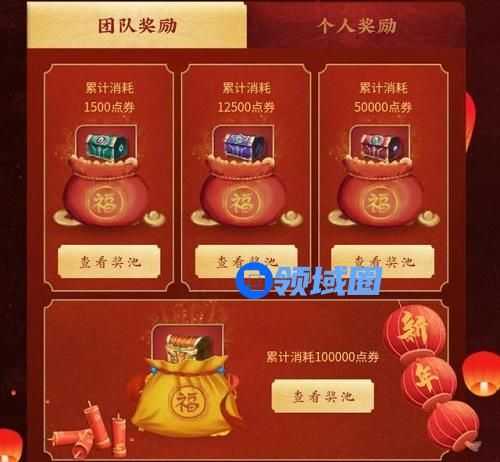 在这个组队活动里面,大家可以有20个玩家,一个战队,而玩家们通过消费点券从而获得一定量的抽奖机会。大家要注意这里面呢消费点券是20个玩家总额,并不是说某一个玩家带着19个玩家白嫖。所以在去年的时候,很多玩家们都去组队了,而最终也都拿到了相应的奖励。