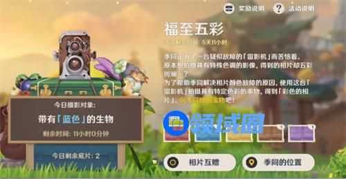 拍照地点推荐:晨曦酒庄左边的那一堆冰史莱姆,传送过去往前走就能看到。或者在打急冻树/纯水精灵刷材料的时候,记得使用奇特的留影机拍摄它们。