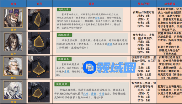 群雄的英雄没有很强的后期阵容(除吕布还有一战之力外),而前期开荒需要的是稳定输出+续航,以这两个维度来看群雄其实单将除一两个都普遍差点。