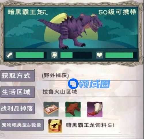 喂食:象拔蚌+罕见肉+稀有肉=暗黑霸王龙(51包)