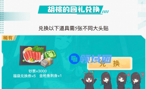 奖励:钞票3000、福袋兑换券5、金枪鱼刺身1