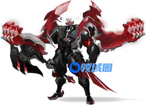 选择了红黑配色体现盘古的威严霸气。他的身体经过机械科技的改造,厚重的铠甲下,是高科技分子材料聚合而成的红色躯体。