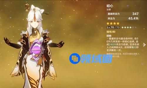 1.原神昭心是一款品质为四星紫色的法器装备。属性上,通过昭心可以获得一定数值的攻击力与基础攻击力。