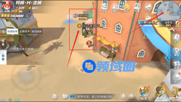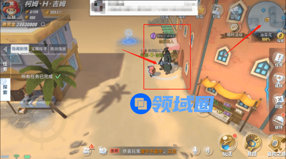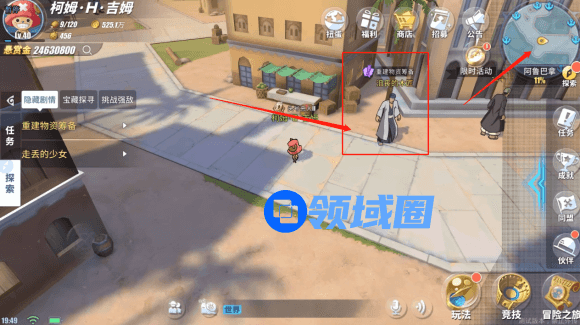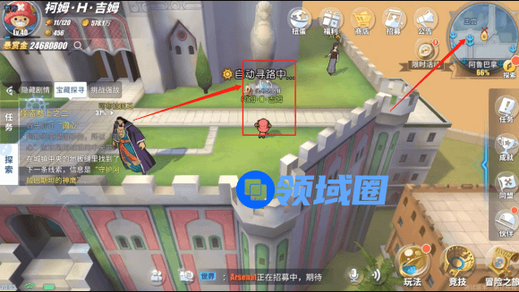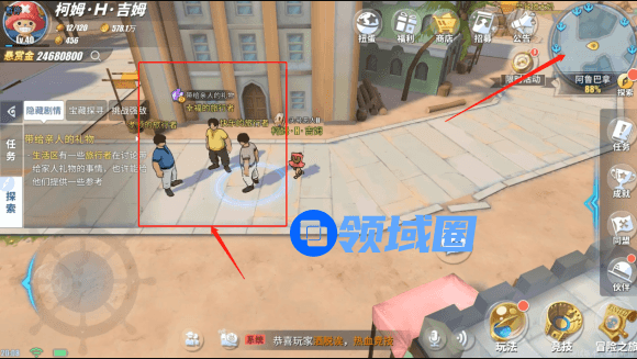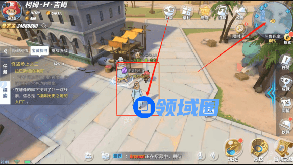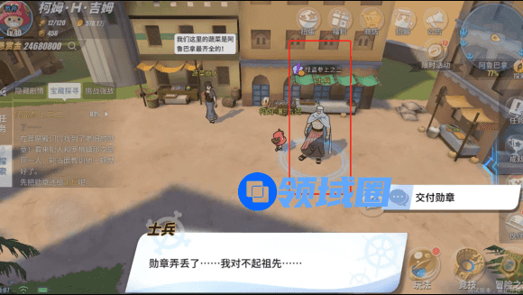 地图右上角蔬菜商人附近的士兵是领【怪盗参上之二】的人物(生活区北部)。士兵的勋章弄丢了,然后要前往“圆心”地,说什么通往终点的钥匙就在那里,反正去地图中间康康呗。