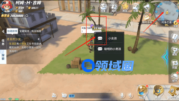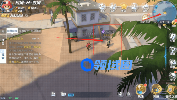 生活区上方有一堆小孩子正在玩捉迷藏,需要和小孩子们一起玩捉迷藏游戏才行。