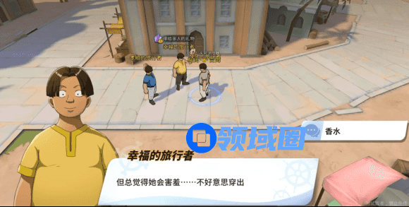 这位幸福的旅行者建议给她妻子带一瓶本地特色香水,香水刚好是之前完成任务后赠送的。