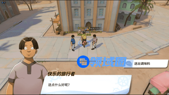 快乐的旅行者一心只想快乐,送他刚从调味料贩子那里买到的特色调味料就完成该任务。