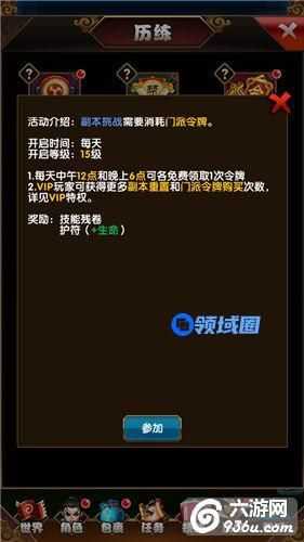 副本挑战需要消耗挑战令牌,挑战成功可以获得技能残卷和装备护符,技能残卷可以用于开启新的技能和技能的升级。