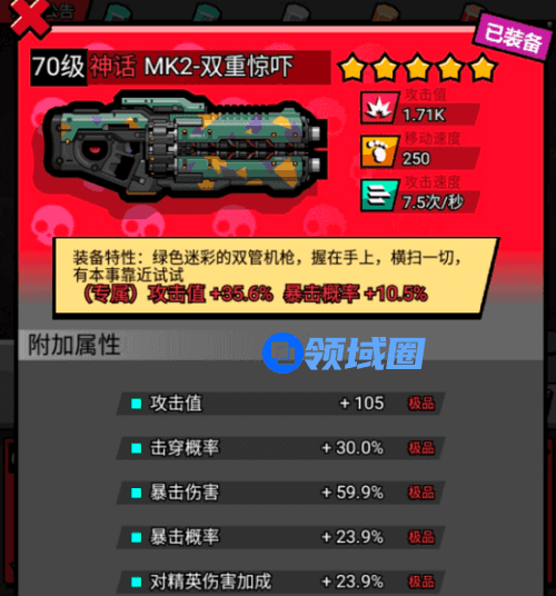 装备特性:绿色迷彩的双管机枪,握在手上,横扫一切,有本事靠近试试。