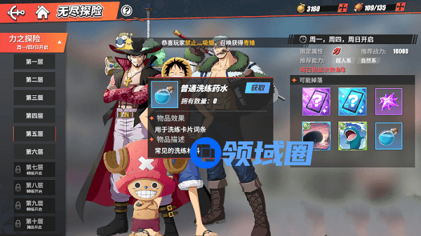 2、前两种可以通过无尽探险获取,特技洗练药水暂时没有固定获取渠道,无尽探险副本难度越高获得的数量就会越多。