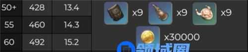 50突破60级:高塔孤王的残垣*9+黑铜号角*9+污秽的面具*9+3万摩拉