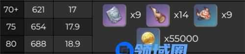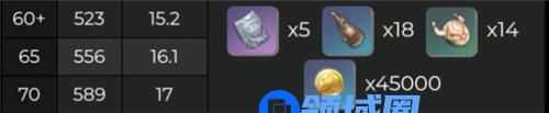 60突破70级:高塔孤王的断片*5+黑铜号角*18+污秽的面具*14+4.5万摩拉