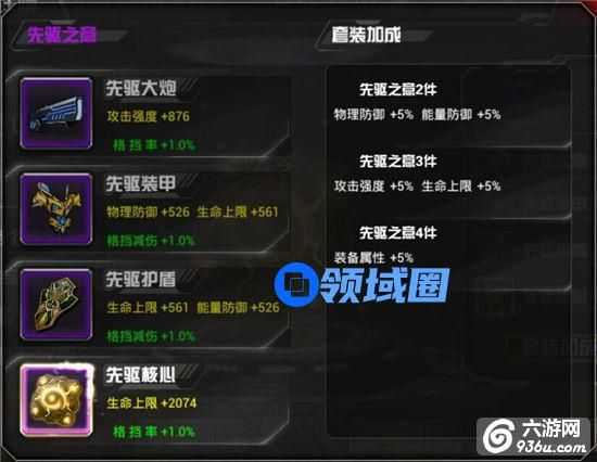 装备套装带有套装属性,如在变形金刚上装备完整的套装,则会获得对应属性加成。