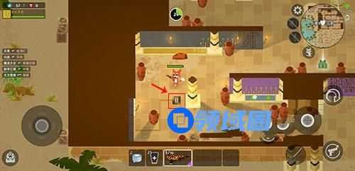 然后玩家来到这个左边,可以看到有个方块,需要踩一下,此时左边的这个门可以打开。