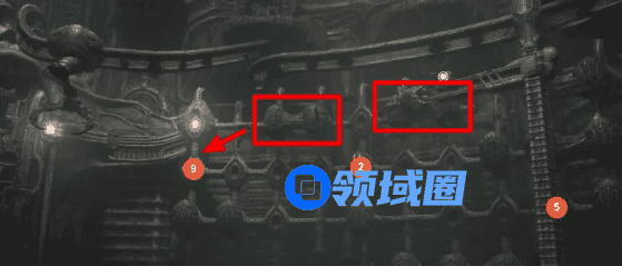 2、第一次,需要先将1号移动到左上角,之后红框里面的蛋向右开始移动在2、3号位置,按照向上一格,左移到头,在向上一格顺序将一号蛋移动到左上角,随后使用中间控制台抓取1号,但是1号会找到破坏而掉落。