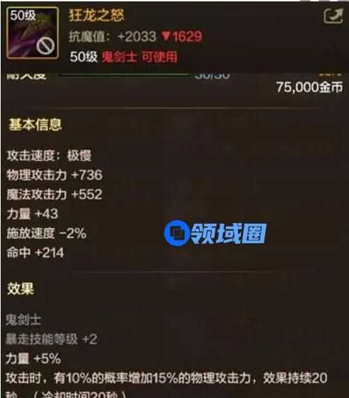 核心属性:暴走等级+2,力量+5%,攻击时有10%概率增加15%物攻。