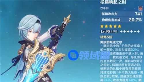 首先松籁响起之时只适合【物伤双手剑主C】使用,目前符合这个定位的角色只有两个:【优菈】和【雷泽】。因为松籁响起之时的副词条是【物理伤害加成】,满级加20.7%的物理伤害。