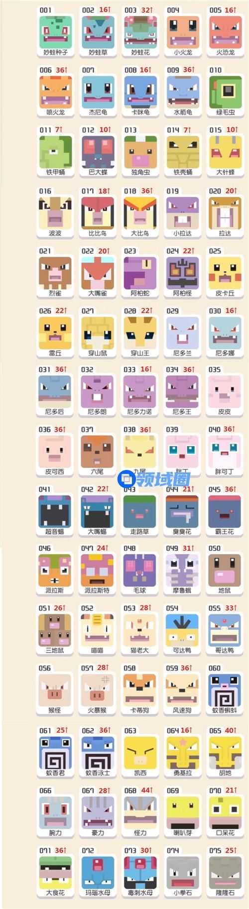 宝可梦大探险进化等级表大全图鉴一览