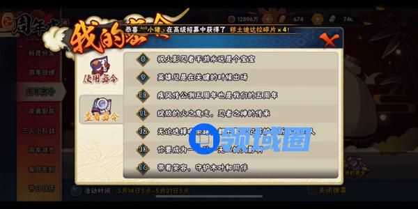 火影忍者手游周年密令2021大全: