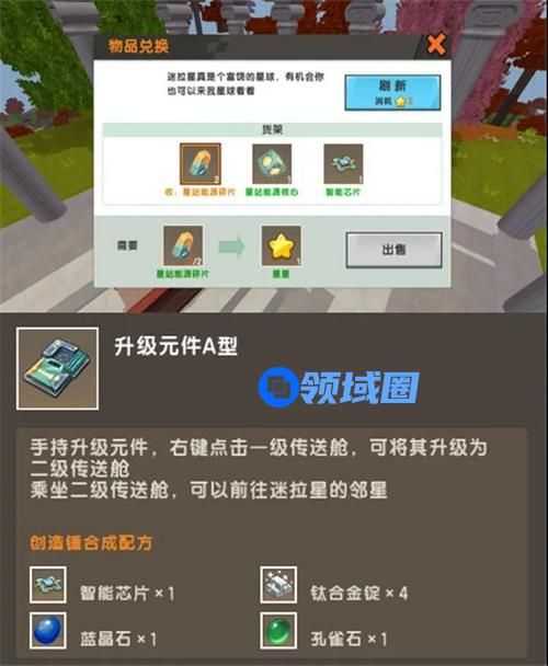当然了,冒险家们也可以跟空岛神殿的NPC进行交流,在空岛NPC的对话货架上也有星站能源核心和智能芯片。胖叔拿出钛合金工匠锤在创造台上材料成功合成了升级元件A型,星球旅行即将开启!