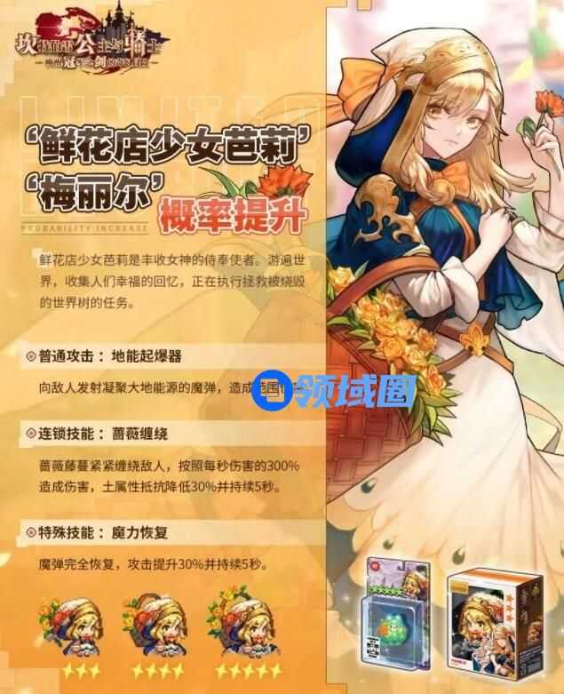 鲜花店少女芭莉是丰收女神的侍奉使者。她游遍世界,收集人们幸福的回忆,正在执行拯救被烧毁的世界树的任务。芭莉有着全游戏目前最高的攻击,这也让她有非常恐怖的输出能力。她的被动让她可以适应很多种队伍组合,专武射程很远,并且加快蓄力速度,穿墙更容易击中敌人,可以说是远程大炮。缺点是蓄力期间不能冲刺,很难闪避攻击风筝敌人。