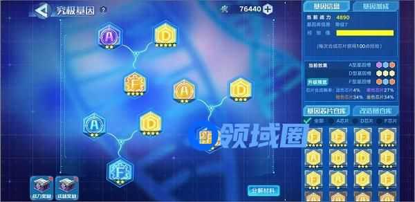 4、基因芯片类型分别对应,A类型代表攻击属性,D类型代表防御属性,F类型代表功能属性。