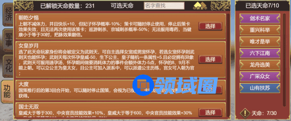 霓裳羽衣+5%,千古一帝+5%,广采众女+5%,沉湎淫逸+15%,因为初始才艺很低,有两个刷法: