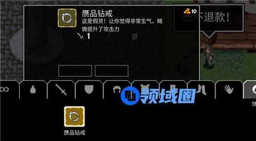 戒指属性如下图所示,买完之后角色就会发现这是【赝品钻戒】,由于这是假货让你觉得非常生气,略微提升了亿点攻击力。(PS:描述是1点攻击力)