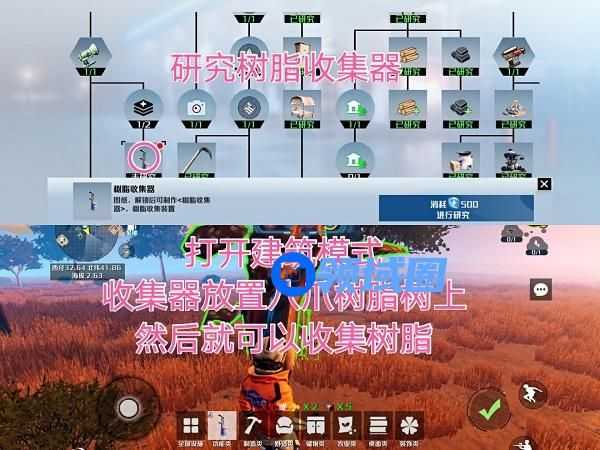 研究树脂收集器,然后在建筑模式上面可以把树脂收集器放置到八爪树脂树上,收集树脂。