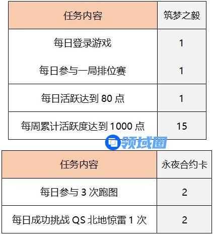 ①完成页面指定任务即可获得筑梦之毅和永夜合约卡