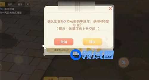 最后会弹出系统提示窗口,点击【确认】按钮就能把牛给卖掉了,480摩尔豆一头。