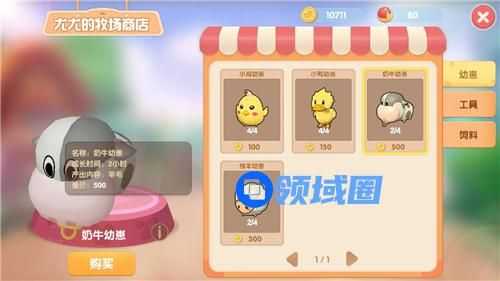 首先牛奶只能由奶牛产出,大家需要去【尤尤的牧场商店】,花费500摩尔豆购买一头奶牛幼崽和挤奶用的桶,将其放置在牧场喂养一段时间之后,变为成年奶牛才能产奶。