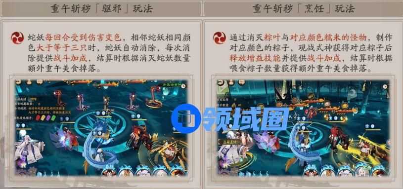 *重午节会期间,会有前来捣乱的妖怪和请求制作粽子的妖怪,完成挑战将获得重午美食。