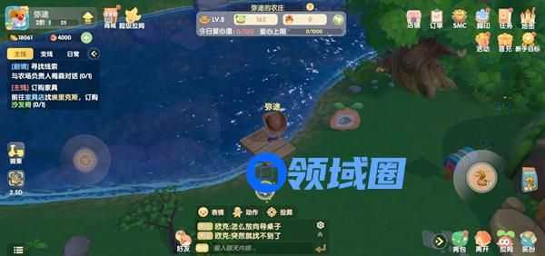 2、点击传送回家园,再往小屋方向走就能看见鱼塘了。